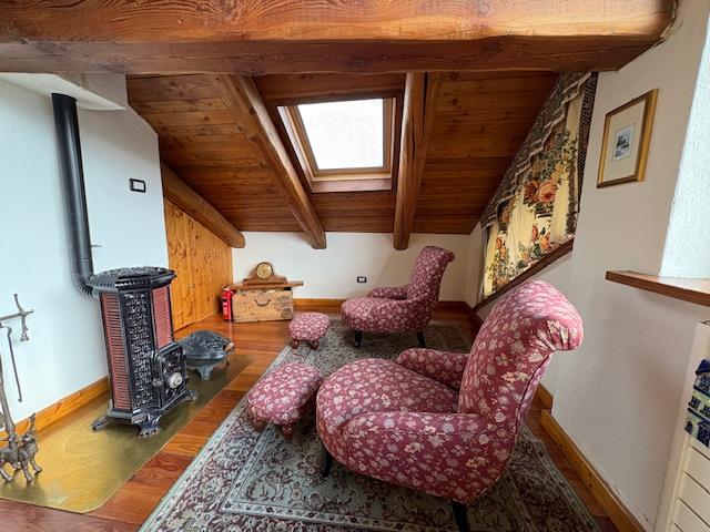Salendo ancora un piano di scale ci si trova sotto il colmo del tetto con l’orditura in legno a vista ed altezze di tutto rispetto